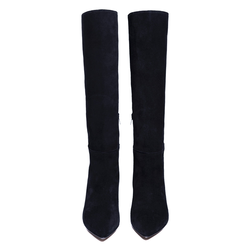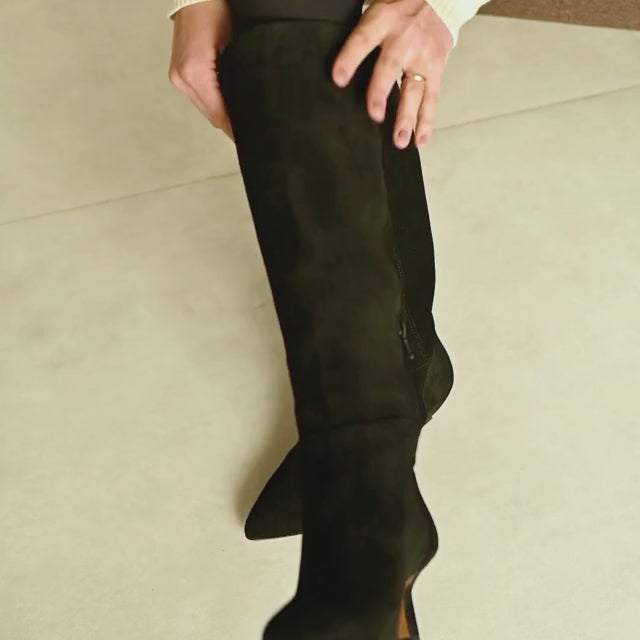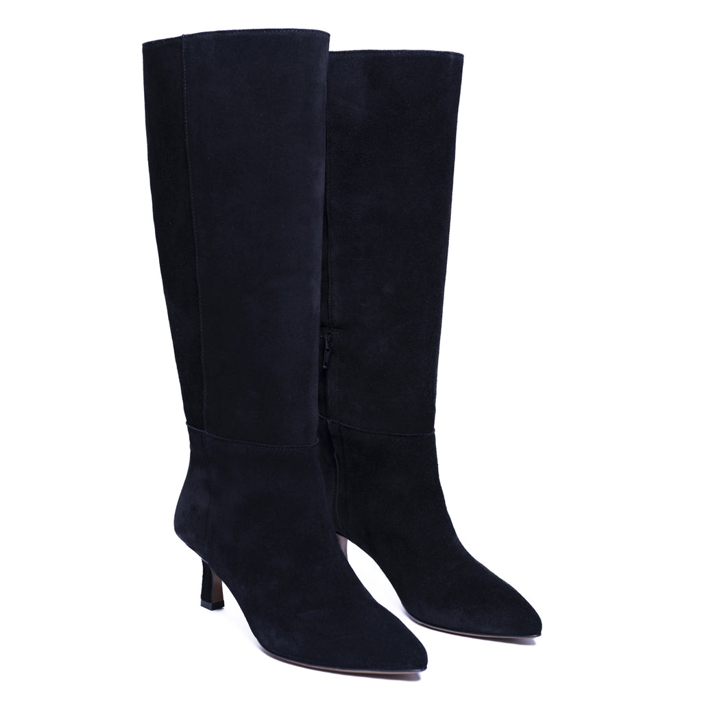 These boots with pointed toe and straight shaft can accompany you from morning till night. The 5.5 cm kitten heel is elegant but comfortable, perfect to party all night long or for a formal lunch with colleagues. Our style advice? Wear it with a black dress and slouch blazer during the day, make them sparkle in the night with a sequin skirt and a silk shirt.